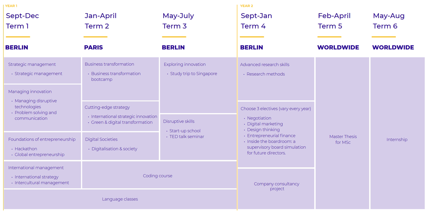 - 2 years full-time programme in Berlin and Paris, starting in September